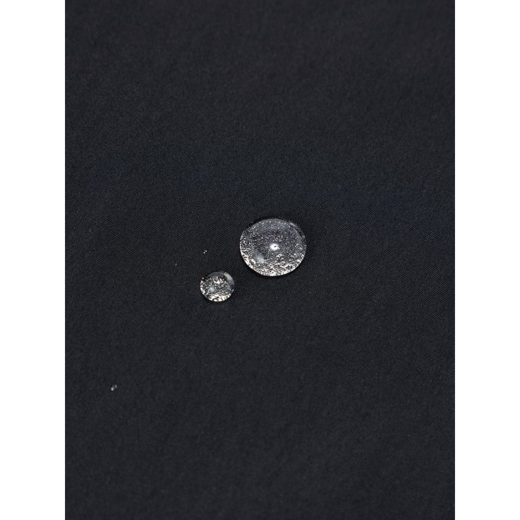 細番手の糸を高密度に織り込んだポリエステルの生地は、なめらかで上質な印象。適度なストレッチ性も持ち合わせています。生地にははっ水加工を施し、多少の雨や汚れに対応。フロントに3カ所のポケットを配置し、ファスナー付きポケットにはスマートフォンや財布などさまざまなアイテムを収納可能です。UVプロテクト(UPF50+、紫外線カット率95%以上)機能付き。