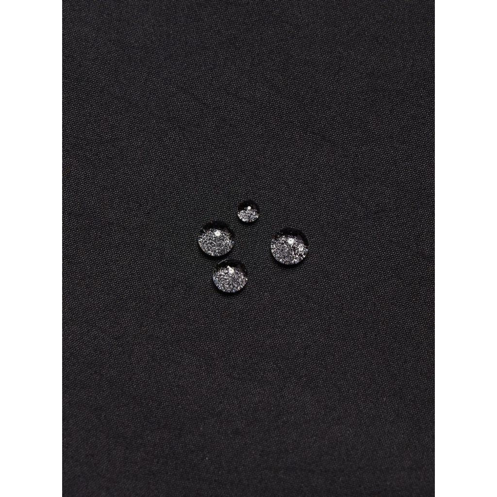 細番手の糸を高密度に織り込んだ生地は、なめらかで上質な印象。適度なストレッチ性も持ち合わせています。生地にははっ水加工を施し、多少の雨や汚れに対応。両サイドのポケットに加え、右ヒップにもファスナーポケットを配置。ウエストはウェビングベルト仕様です。UVプロテクト(UPF50+、紫外線カット率95%以上)機能付き。裾のドローコードでシルエットの調節が可能です。
