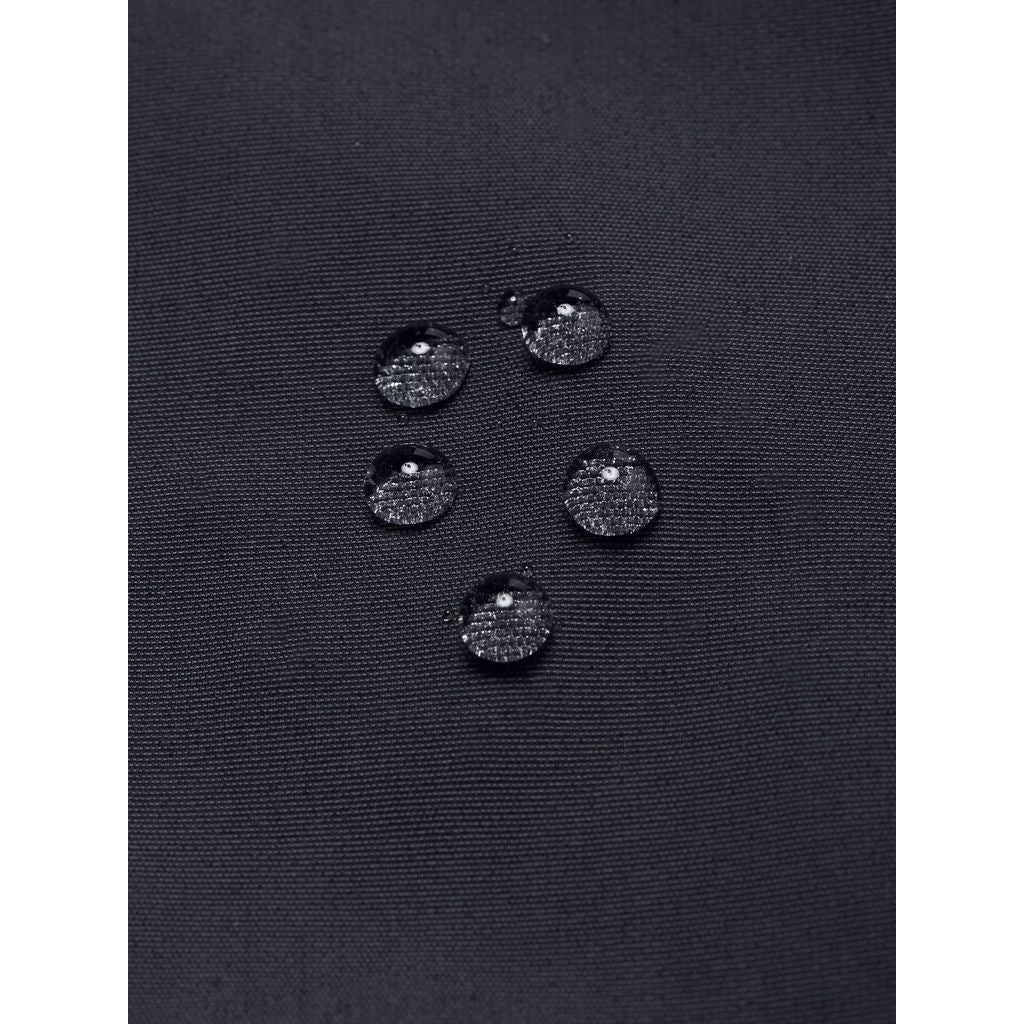 表地には2層構造の防水透湿性素材ハイベントを採用。光沢を抑えたマットな見た目で、厚みがありしっかりした質感です。両胸と両サイドに配置したフラップ付きポケットは収納力を高めるとともに、デザインのアクセントにも。フロントはダブルフラップ仕様で防水性を高めています。裾とウエストに調整可能なアジャスター付きで、袖は面ファスナーでフィット感の調節が可能。