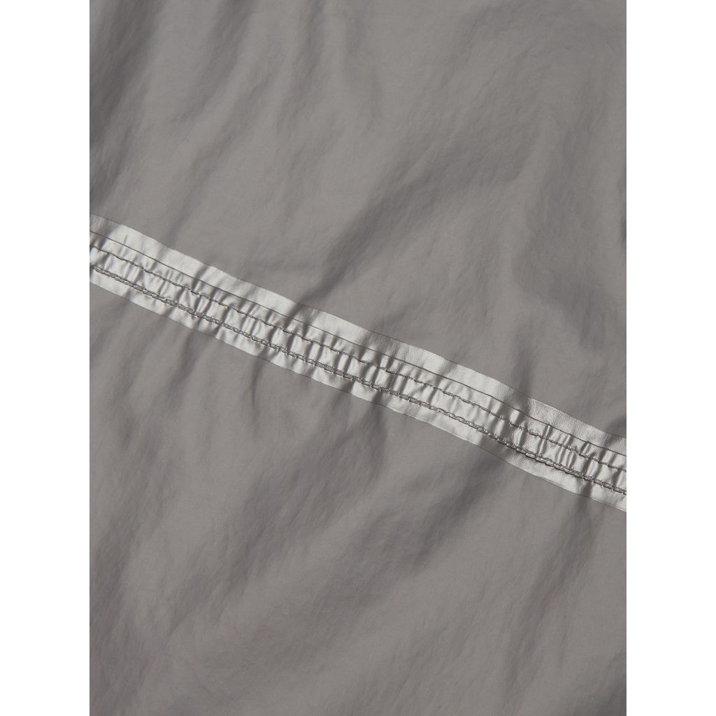 50デニールの薄くしなやかなナイロン素材に、耐久性があり、原料リサイクルが可能なWUROSを採用。加水分解しにくい防水膜とシームテープを使用することで生地の耐久性を強化。フロントはダブルフラップで防水性を高めています。フード付きのミドラーとレイヤリングしやすい立ち襟で、襟にフードが収納可能。裾はドローコードでフィット感の調節ができます。コンパクトに収納でき、携行に便利なスタッフサック付き。