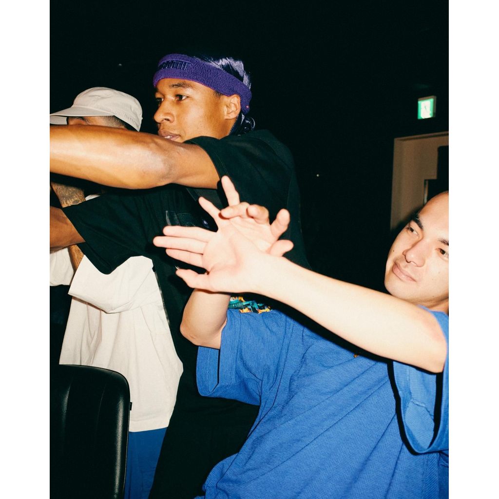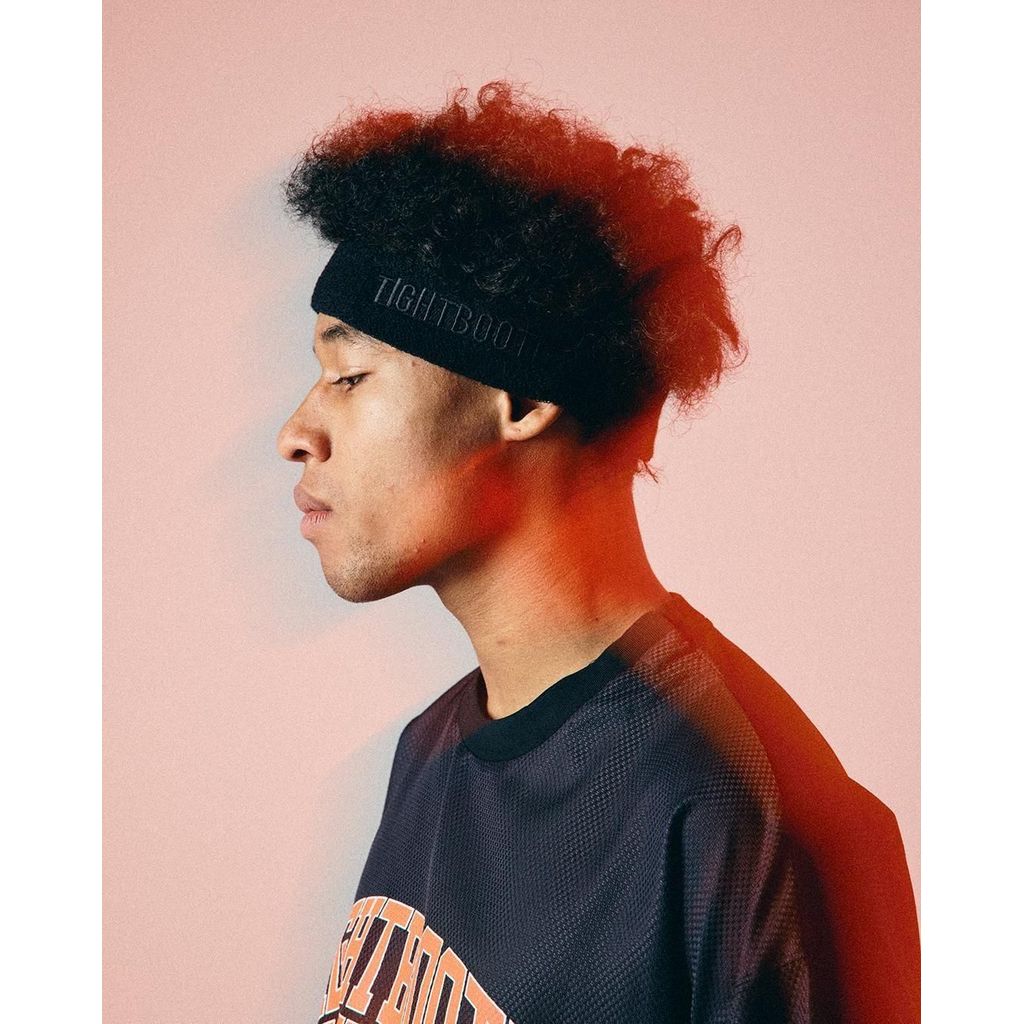 ブランドのロゴ刺繍が入った、柔らかいパイル素材のヘアバンド。
