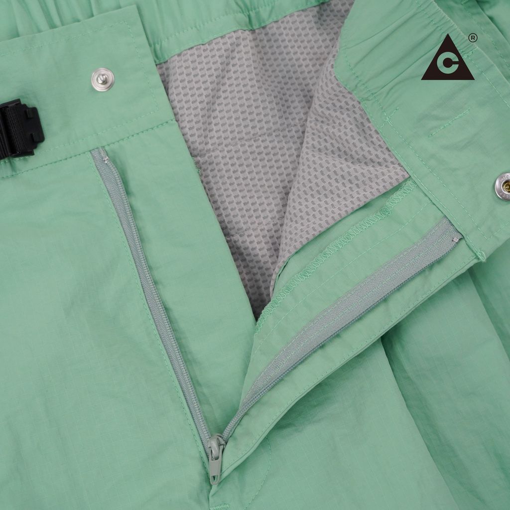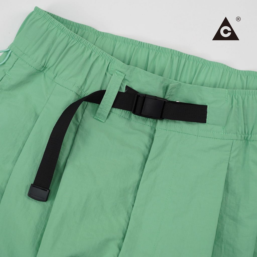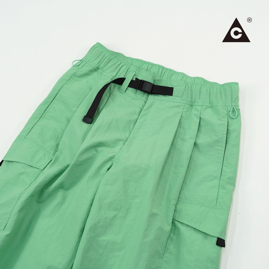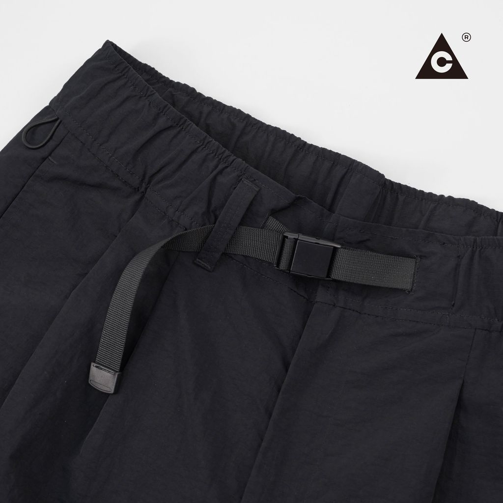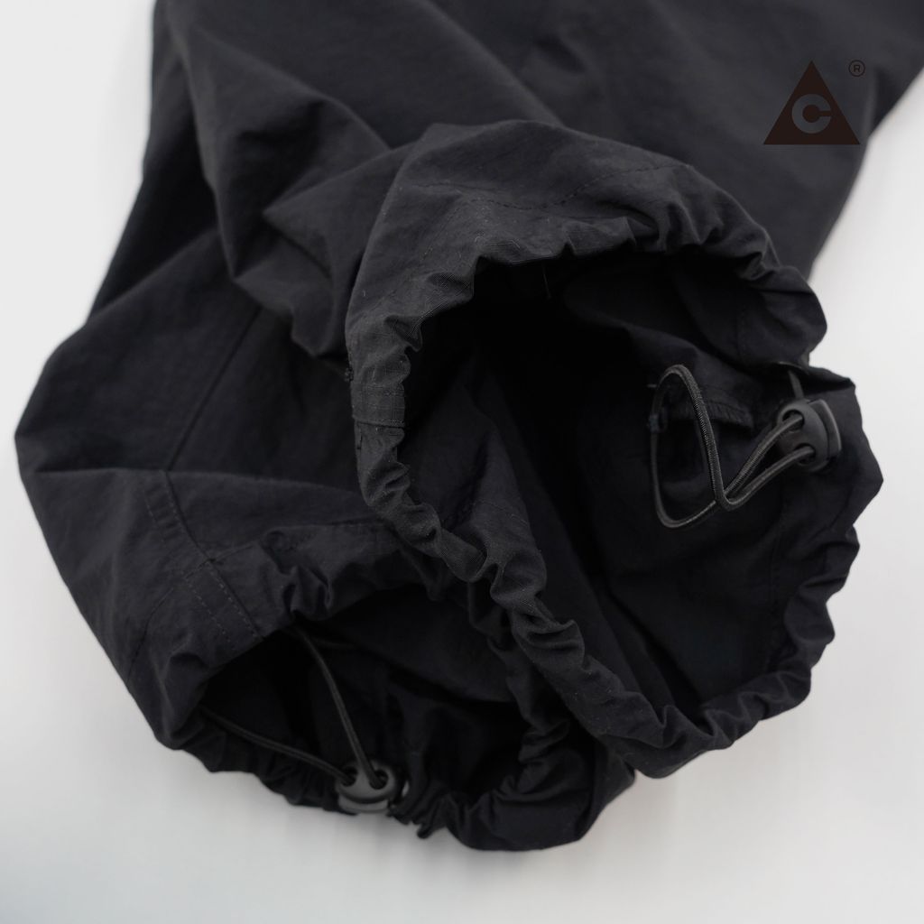 ボンタンをベースにそのシルエットやディテールをナイロンのドローストリングスパンツに落とし込んだのがボンタンテック。
