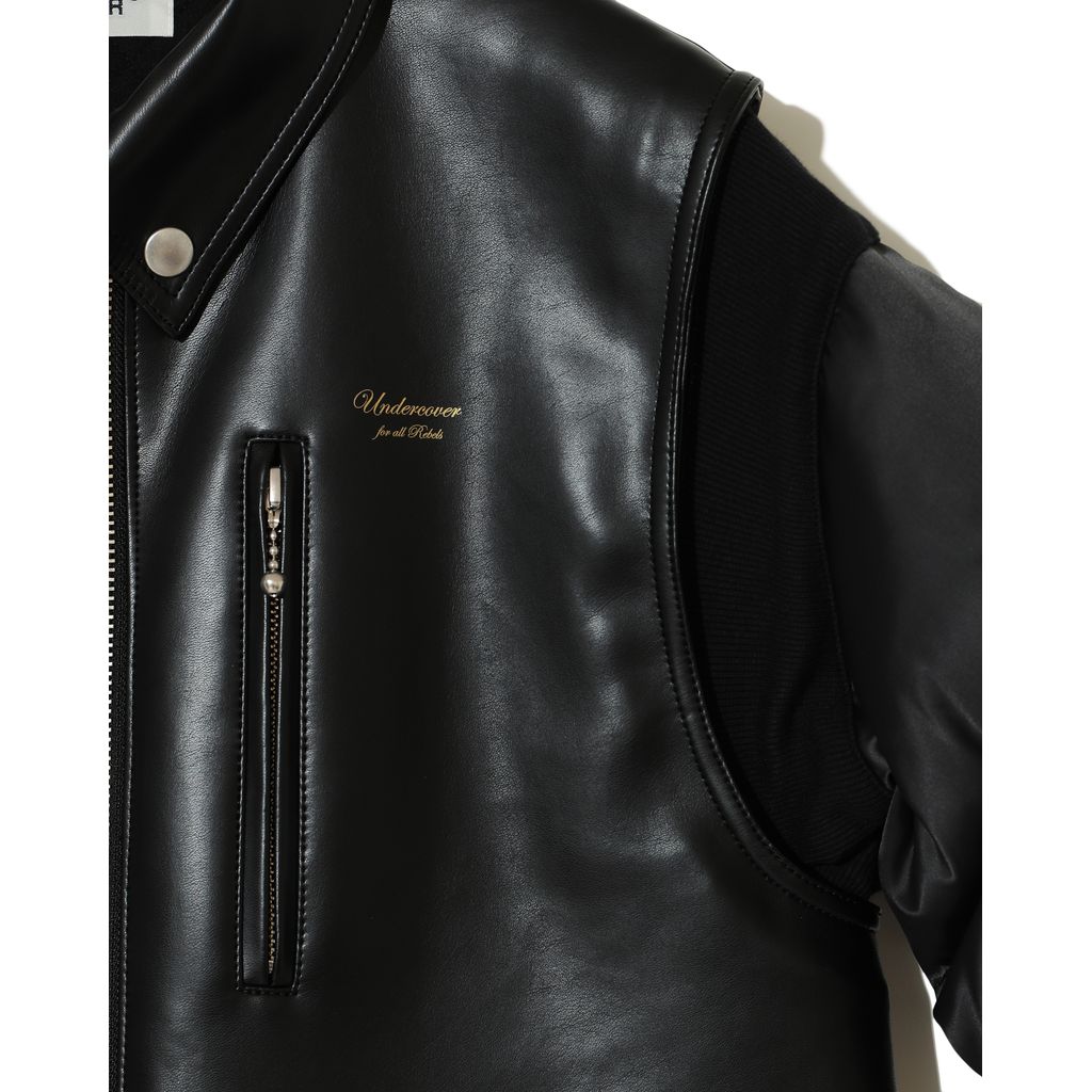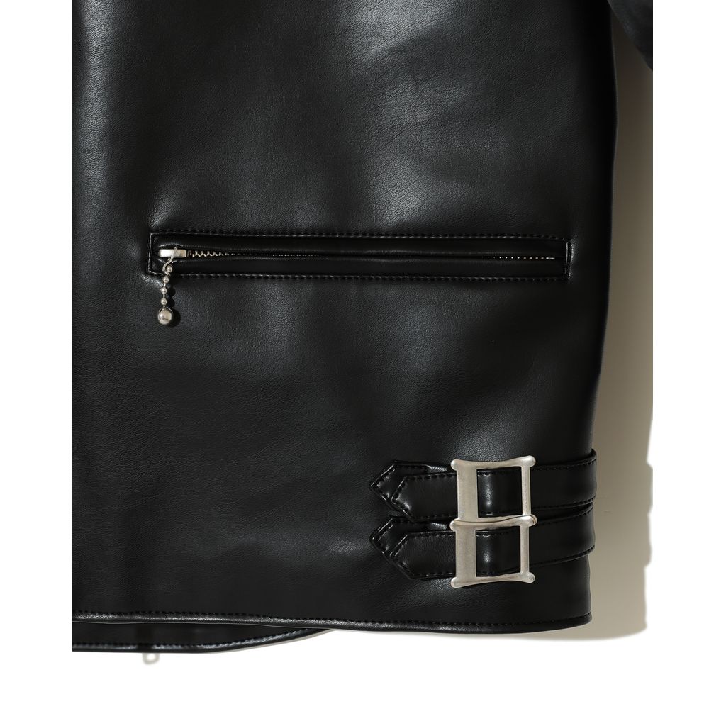 -ダウンスリーブ合皮ライダースジャケット