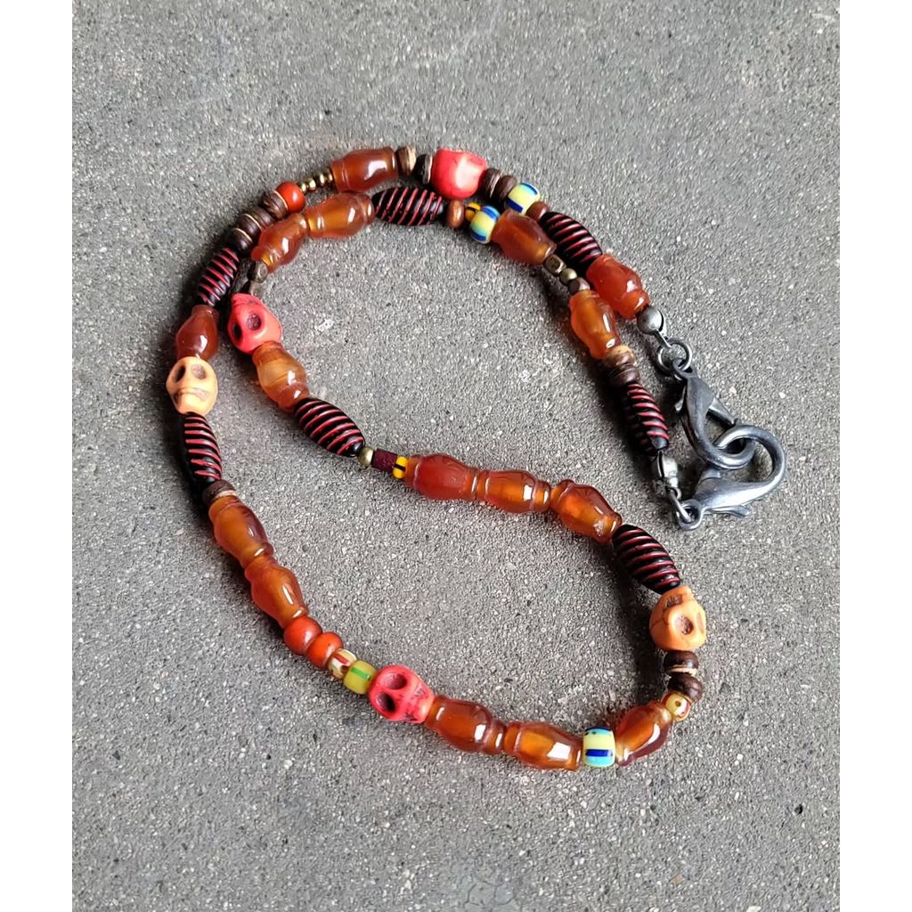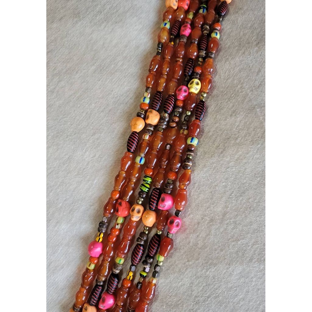 ビーズを使用した、ウォレットチェーンとネックレスの二面性を持ったアクセサリー。
