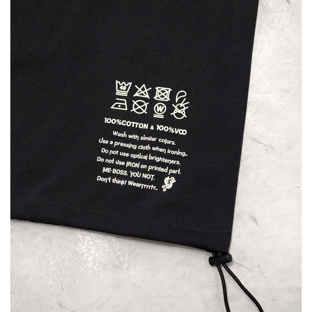 品質表示も兼ねたインパクトある蓄光プリントが身頃に鎮座しています。