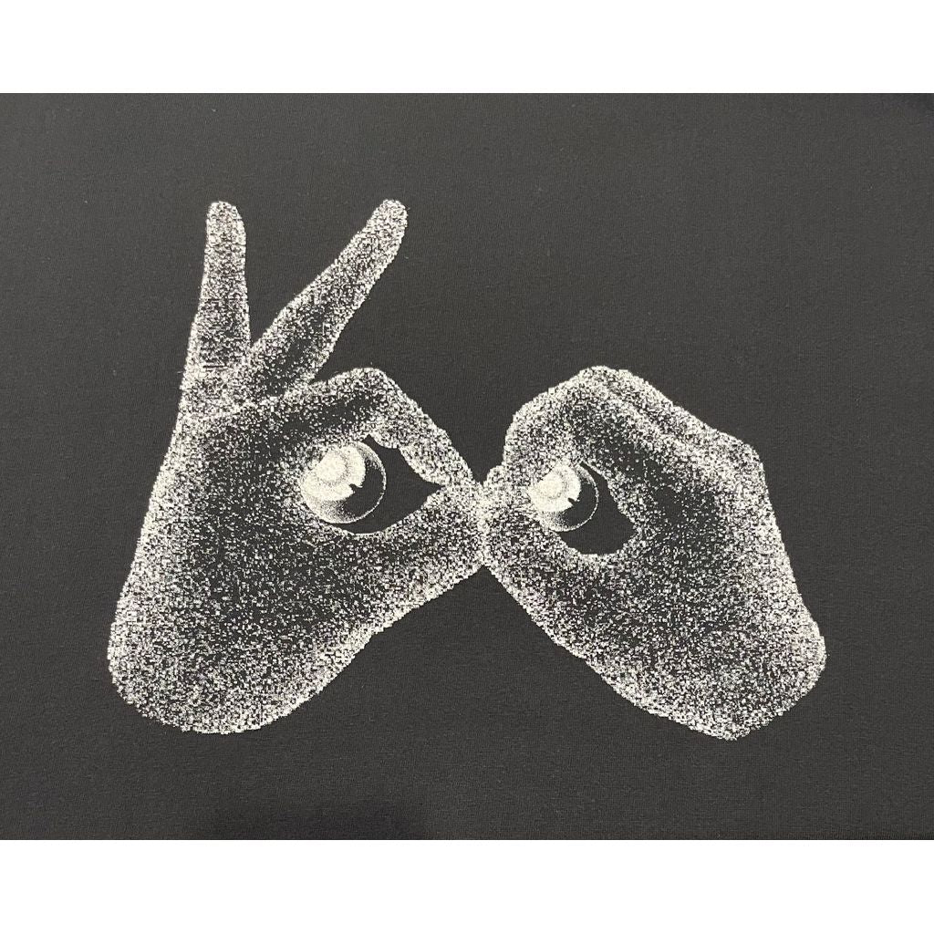 フロントは、大きく初期ロゴがプリントされており、バックはハンドロゴの骨組みを線で表現した仕上がりです。