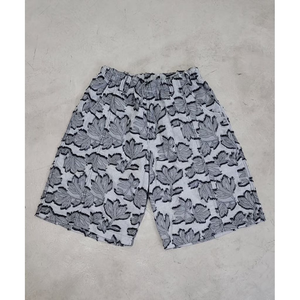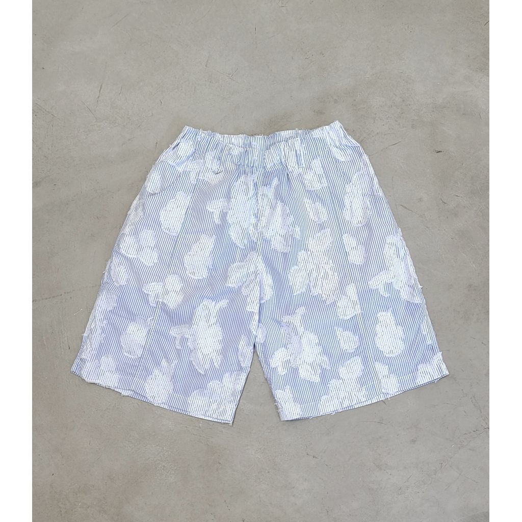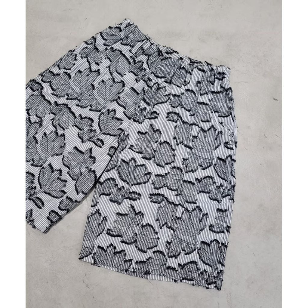 ストライプ柄と花柄ジャガード織りが融合した新たな生地提案の六分丈のショーツとなります。