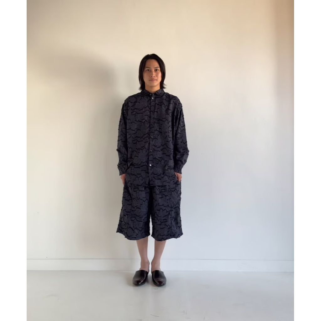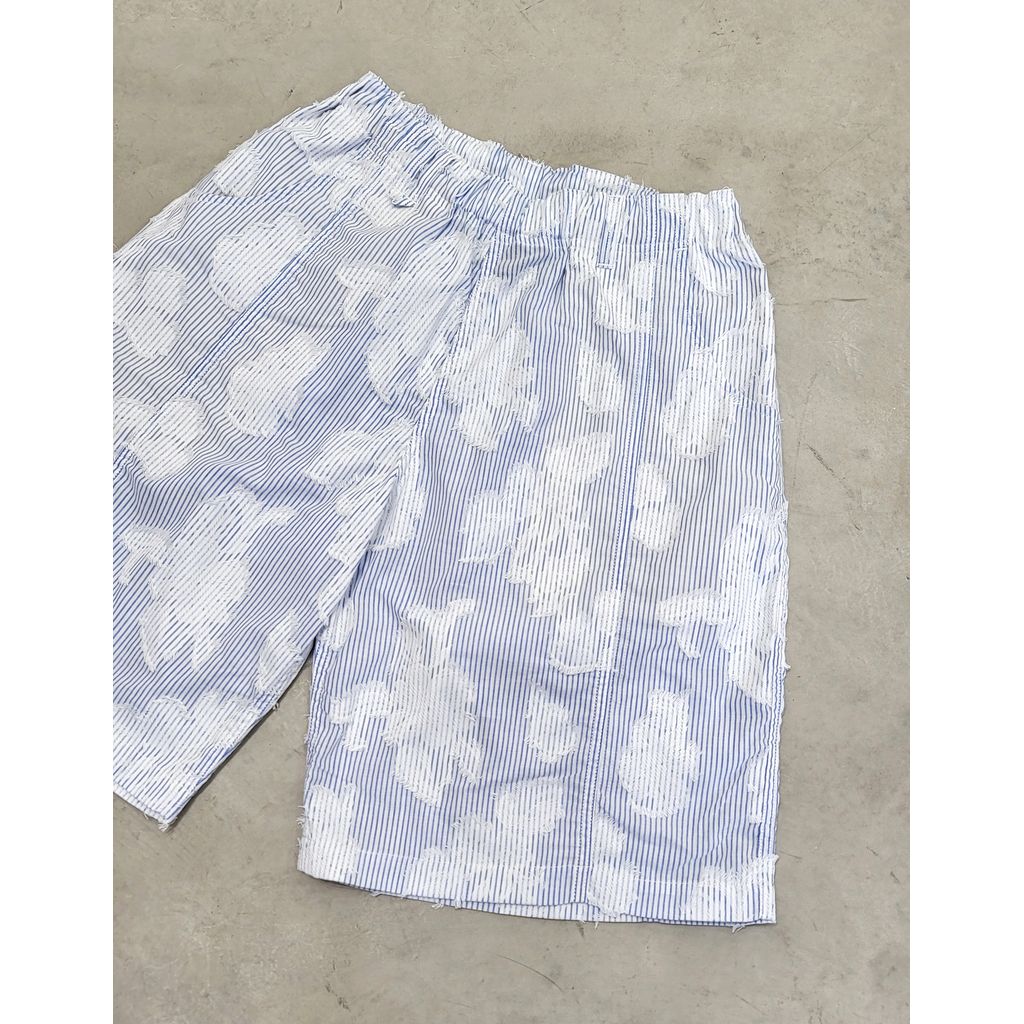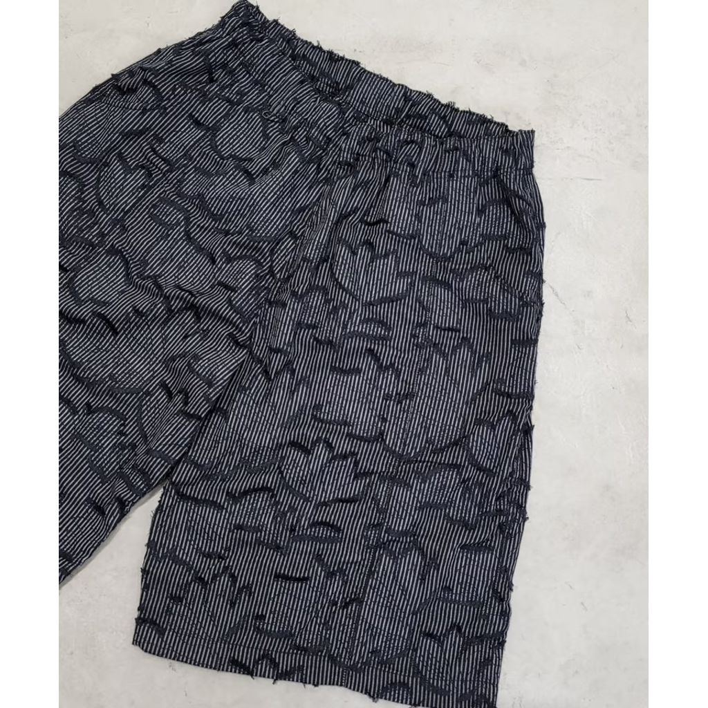 ストライプ柄と花柄ジャガード織りが融合した新たな生地提案の六分丈のショーツとなります。