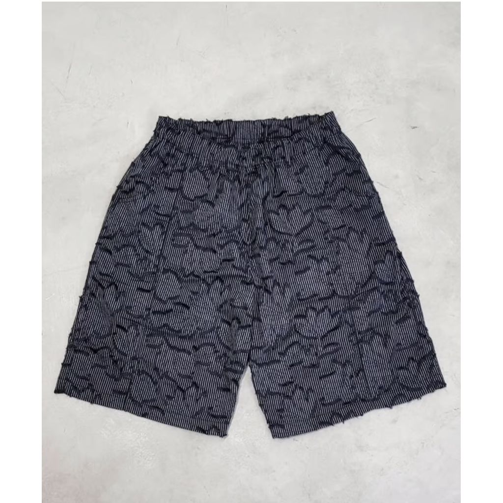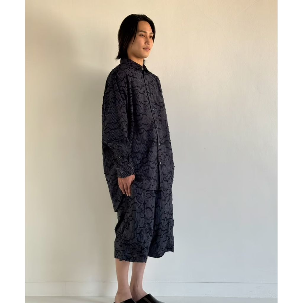 縞と花が1つになりつつも、決してクドくないビジュアル。むしろ上質が漂うファブリックに昇華した仕上がりのハカマ型のEZショーツです。